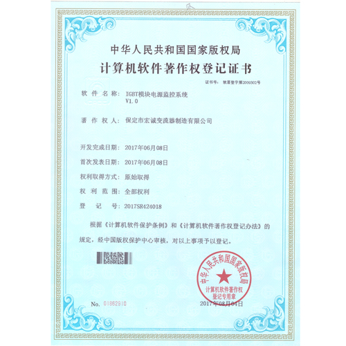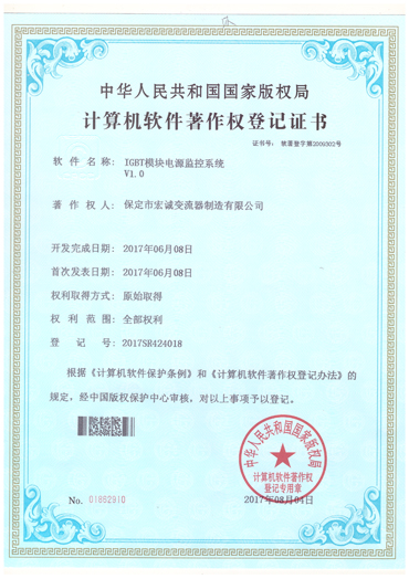 計(jì)算機(jī)軟件注冊權(quán)登記證書——IGBT模塊電源監(jiān)控系統(tǒng)V1.0