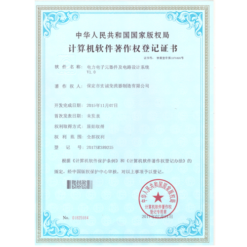 計(jì)算機(jī)軟件注冊權(quán)登記證書——電力電子元器件及電路設(shè)計(jì)系統(tǒng)V1.0