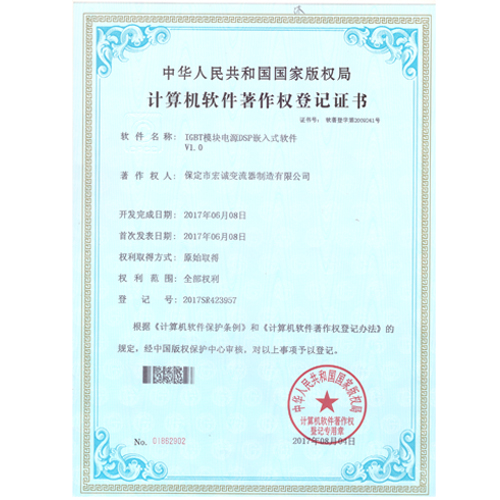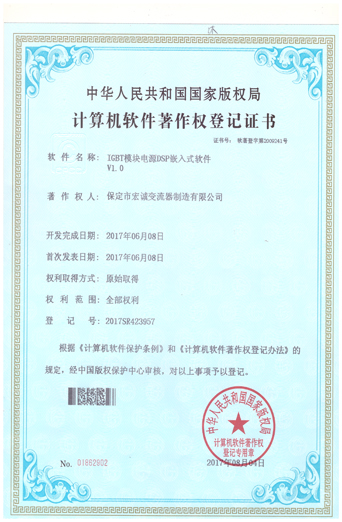 計(jì)算機(jī)軟件注冊權(quán)登記證書——IGBT模塊電源DSP嵌入式軟件V1.0