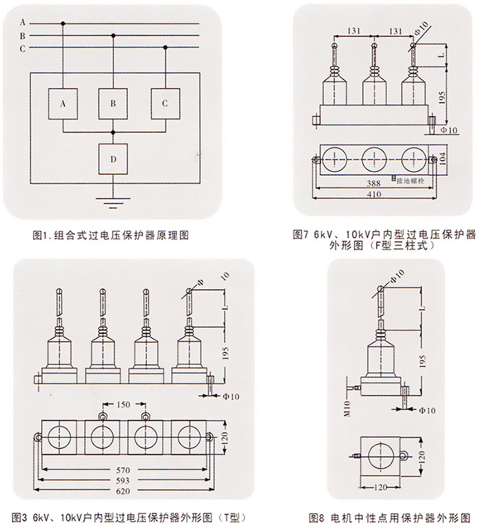 1、無間隙組合式過電壓保護器 2、串聯(lián)間隙組合式過電壓保護器 保護對象: